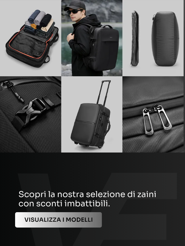 NomadVacc è il punto di riferimento per chi ama viaggiare in modo pratico e organizzato. Le nostre borse e zaini a vuoto sono progettati per ottimizzare lo spazio, ridurre l’ingombro e rendere ogni spostamento più semplice ed efficiente. Uniamo design funzionale, materiali resistenti e soluzioni innovative per accompagnarti in ogni viaggio, dal weekend fuori porta alle avventure più lunghe.